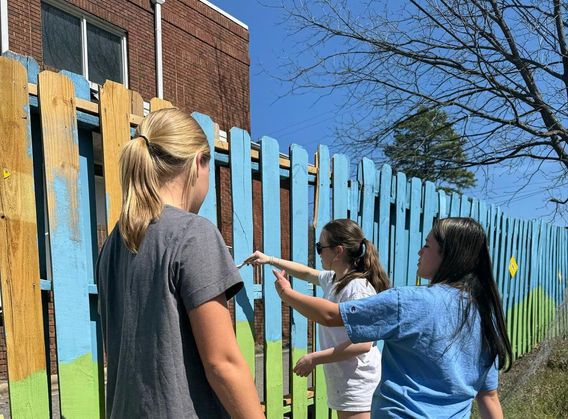 Myers Park Youth painting the fence at Wilmore